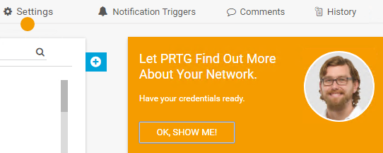 On the Settings tab, enter various administrator credentials for your network environment. With these credentials, PRTG can automatically add a large number of additional devices and sensors to your device tree. This way, you do not need to manually add every single device.