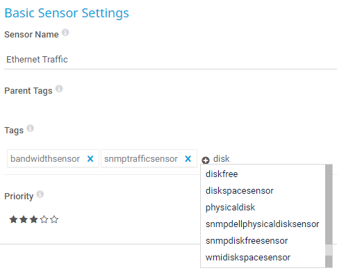 For every object in your setup, you can define tags in the object settings to additionally categorize these objects. Although some tags are predefined when you add objects, you can add further tags. For example, you can mark all bandwidth sensors that are especially important for you with the tag bandwidthimportant.